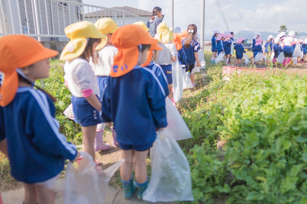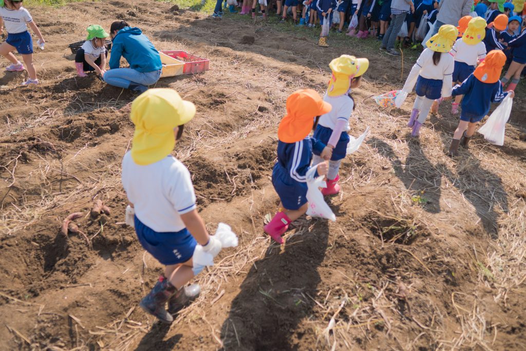 今日は年長さんがの年少さんを誘って、ペアでおいもほりに出かけます。
