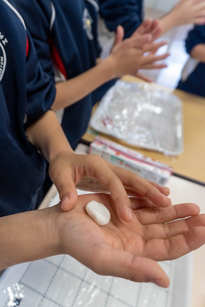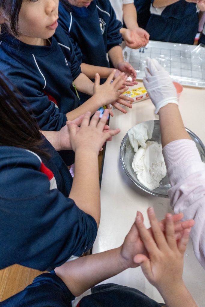 友だち同士で「気持ちいいね〜」「ツルツルやね」と感想を述べながら作っていました
