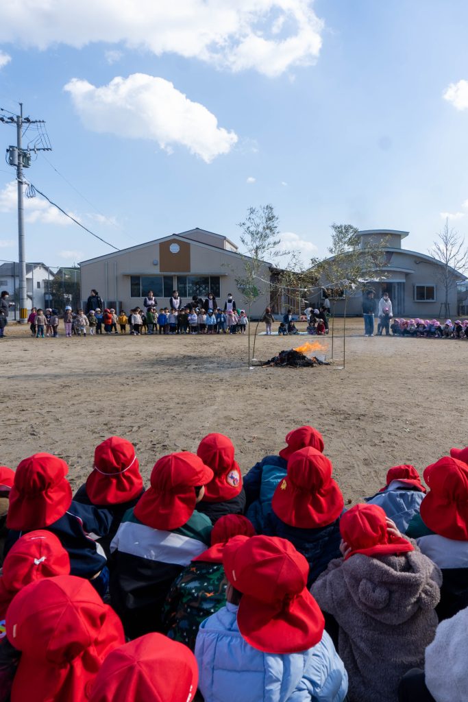 初春の行事『どんど焼き』を全園のこどもたちが集まって行われました