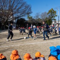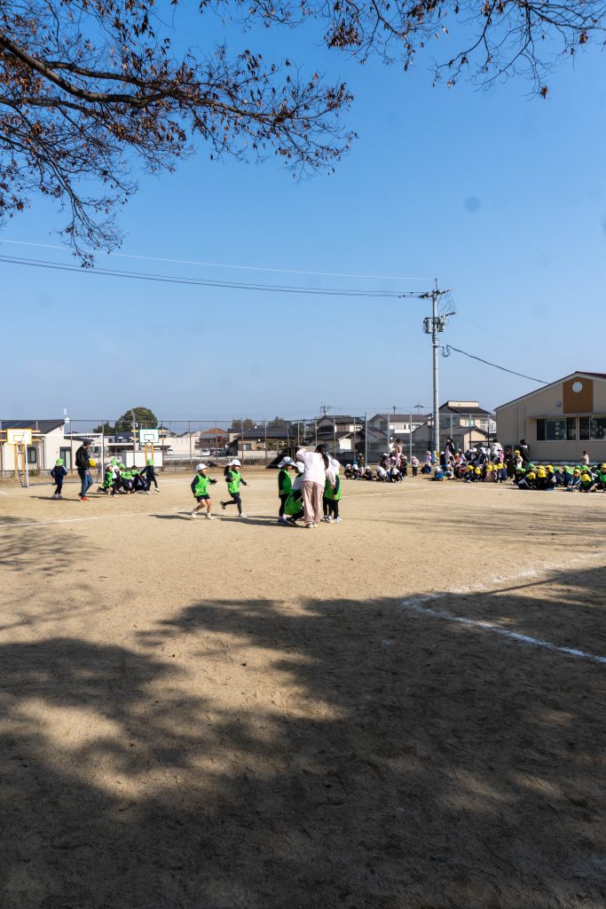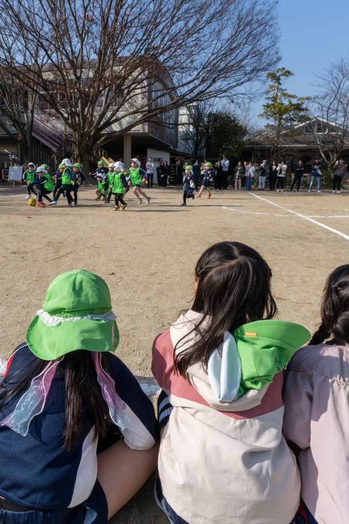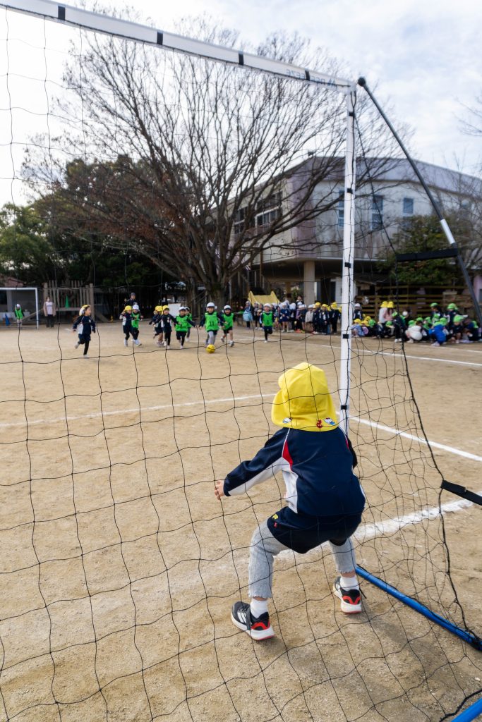 試合開始のホイッスルが鳴ると同時に子どもたちは一斉にボールを追いかけ広い園庭を駆け回りました