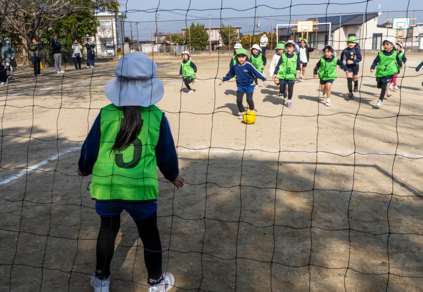 ゴールを守る子どもも「ボールをよく見てとるね」と自分の役割をしっかり考えていました