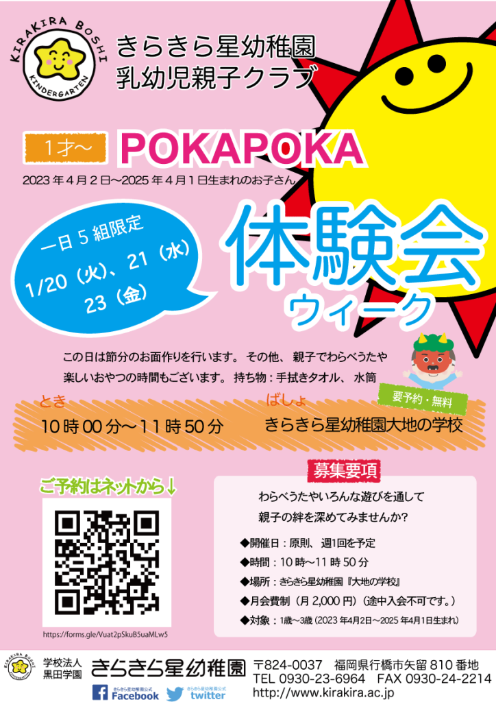 POKAPOKA体験会は予約制になります。