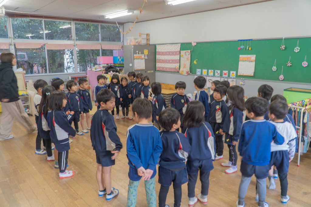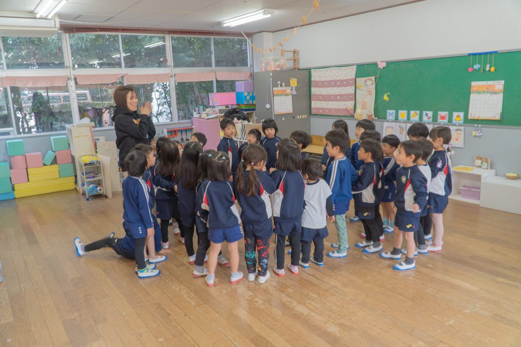 先生の元気な声と、子どもたちの楽しそうな歌が部屋いっぱいにひろがる冬の日でした。